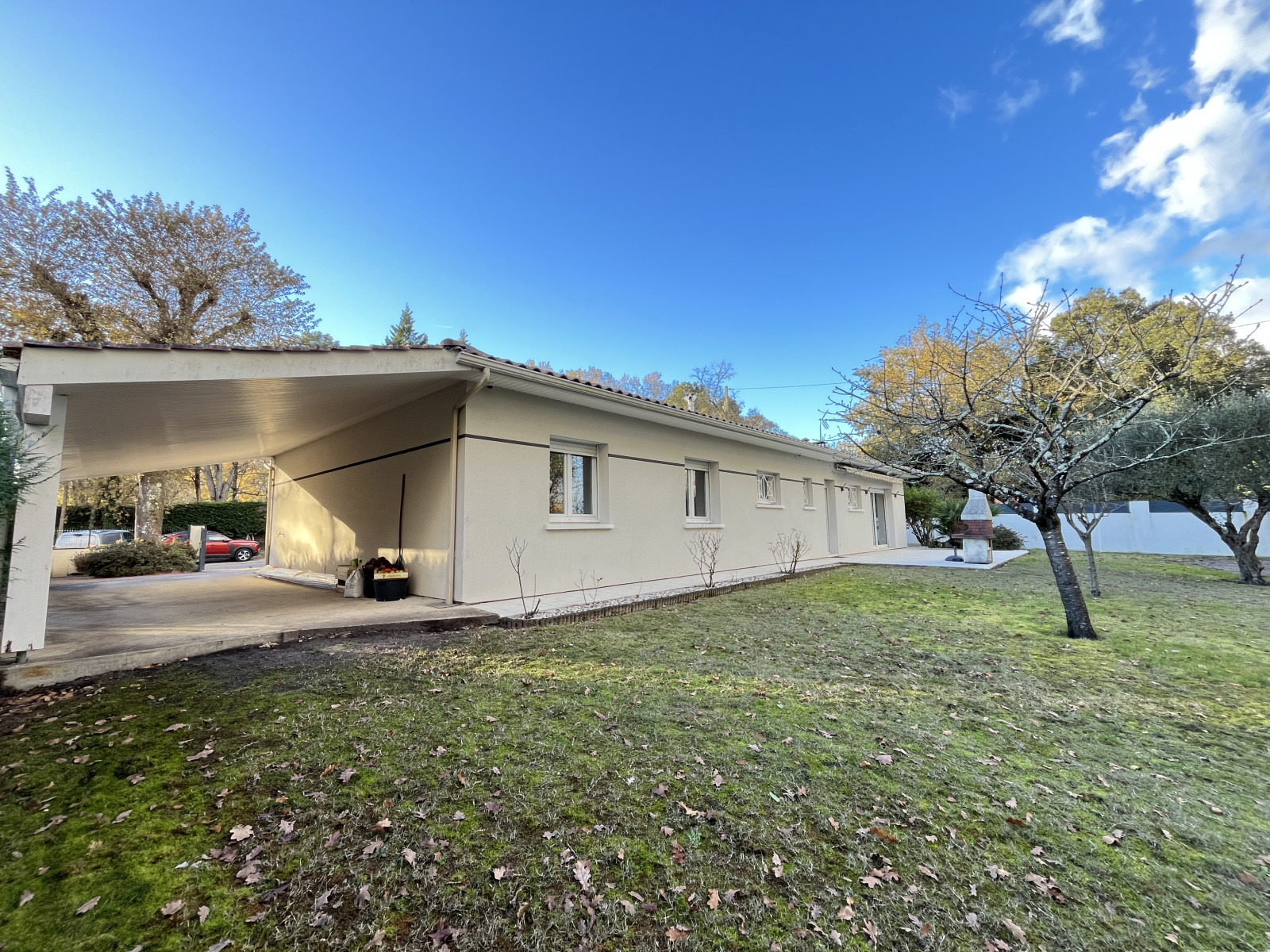 Un garage isolé. Un carport pouvant accueillir 2 voitures. Un cabanon de jardin, le tout sur un terrain de 1000m2.