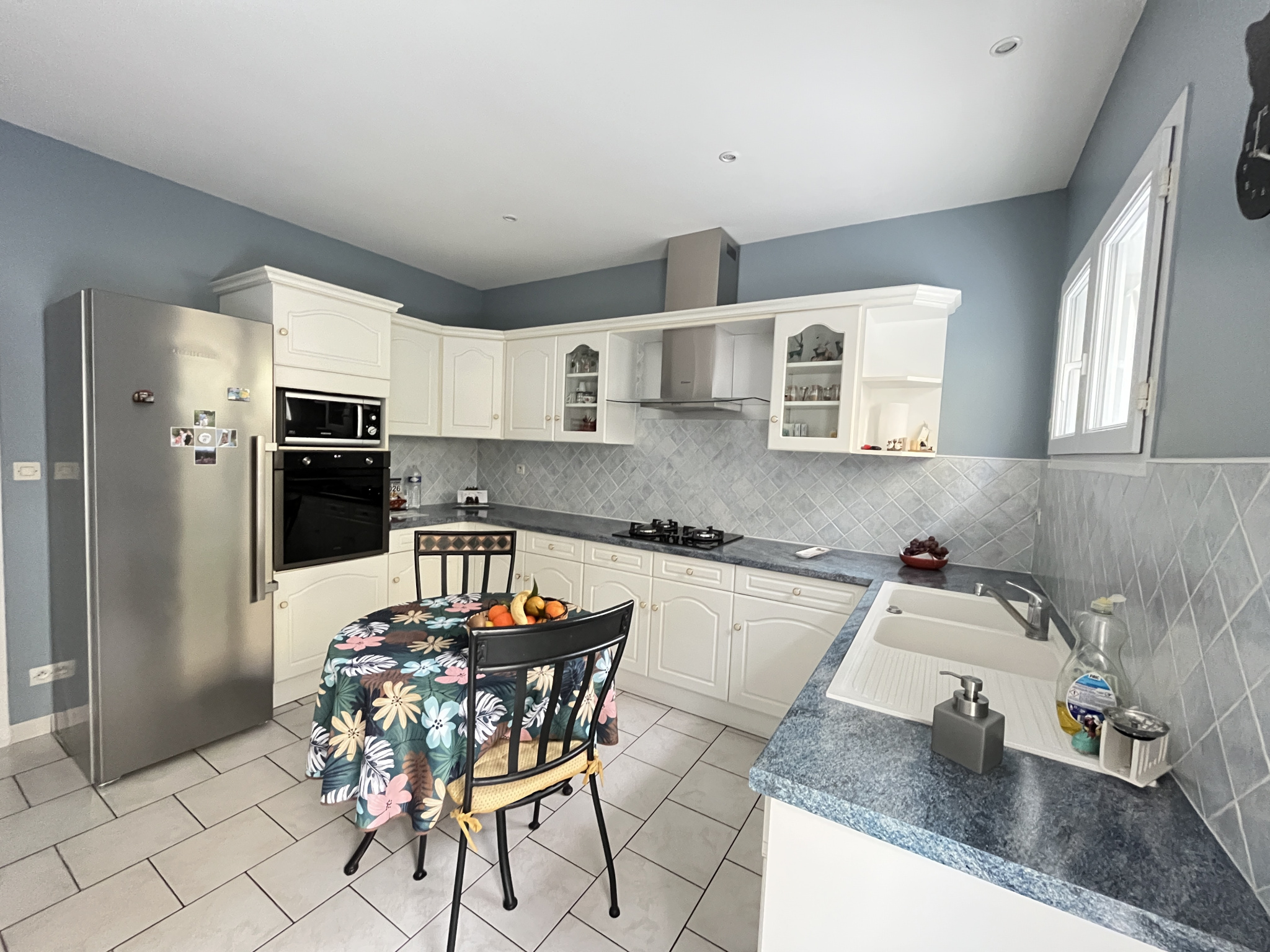 Elle se compose d'une netrée avec placard, d'un séjour salle à manger donnant sur une spacieuse terrasse avec barbecue, une cuisine indépendante équipée, un cellier attenant, une salle de bains avec douche et baignoire, un WC indépendant, 4 chambres.